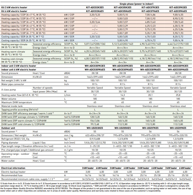 Daugiau techninių duomenų Specifikacijos Aquarea K serijos 3-9kW