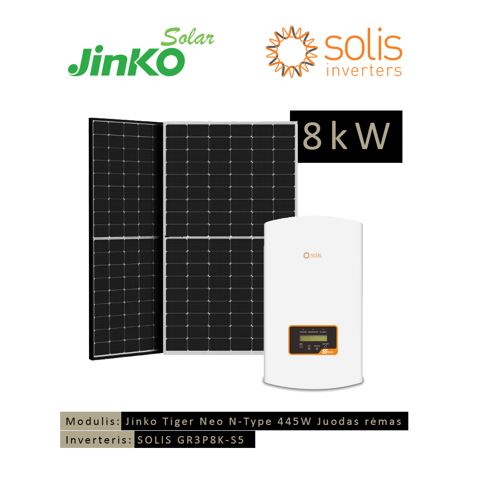 | Detalesnė informacija | Jinko Tiger Neo N-Type 445W Juodas rėmas |